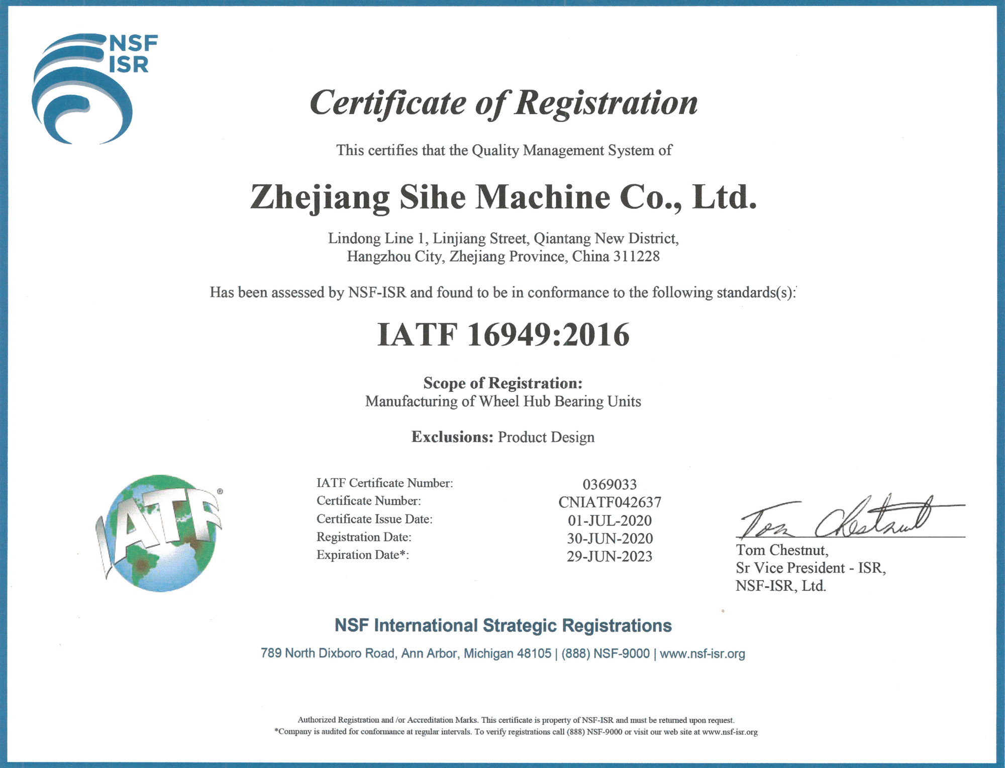 2020年通過IATF16949:2016質量管理體系認證